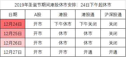 圣誕節(jié)港股25、26日休市:南向港股通24日下午起關(guān)閉