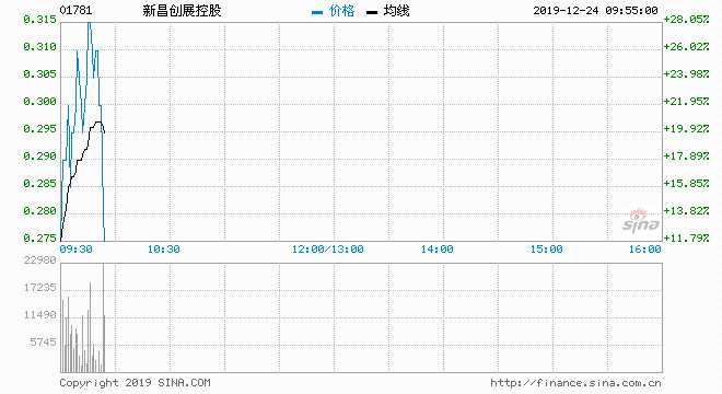 新昌創(chuàng)展控股 ?。?1781) 0.300元 升21.95%
