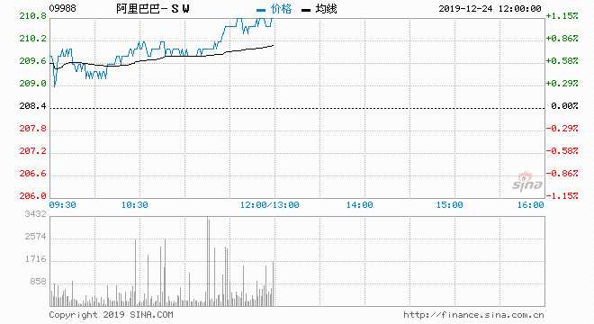 阿里巴巴(09988)現(xiàn)價上升1.06%,報210.6元,盤中高見210.8元,創(chuàng)今年11月底上市以來新高,較招股價176元高19.8%;成交約657萬股,涉資13.79億元,主動買盤68%。