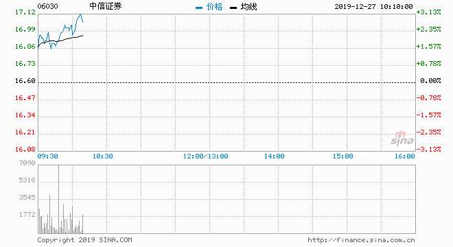 中資證券商股全線上揚(yáng) 中信證券及海通證券各漲約2%