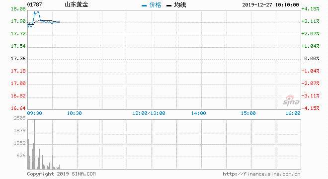 山東黃金(01787) 17.940元 升3.34%