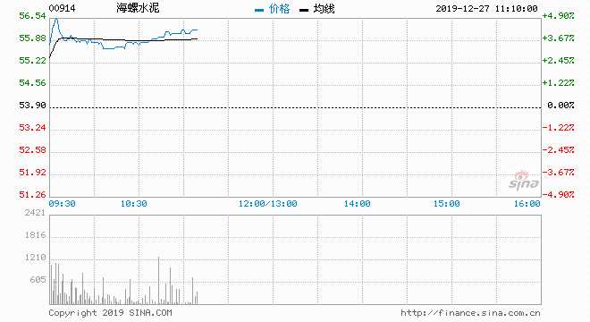 海螺水泥(00914) 56.25元 升4.36%