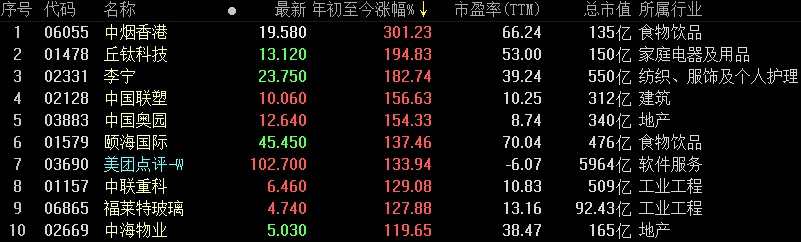 總體來講,在港股通標的今年的表現來看,知名的有業(yè)績支撐的個股表現更加優(yōu)異,而在漲幅榜前十名的名單看,幾乎都是內地業(yè)務的企業(yè)。