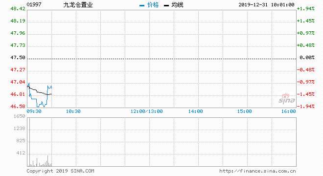 九龍倉置業(yè)(01997)昨日急升3.6%后,現(xiàn)價回吐1.58%,報46.75元,暫跌幅最大藍(lán)籌;成交約20萬股,涉資932萬元,主動沽盤90%。