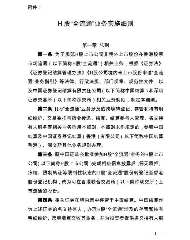 關(guān)于發(fā)布《H股“全流通”業(yè)務(wù)實施細則》的通知