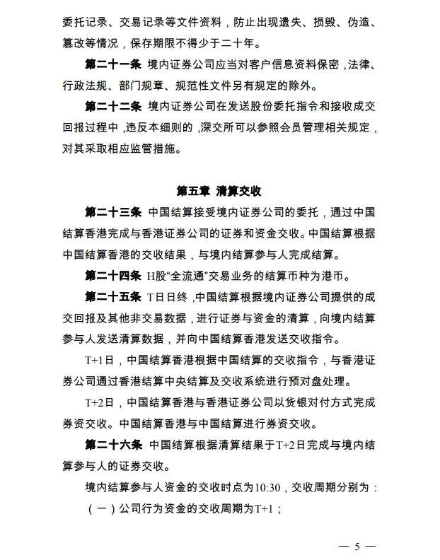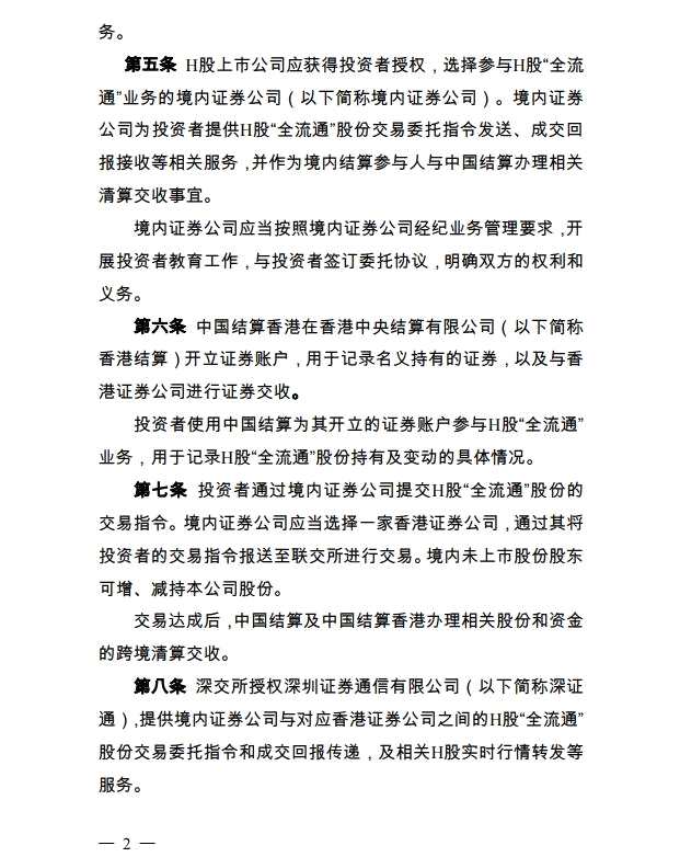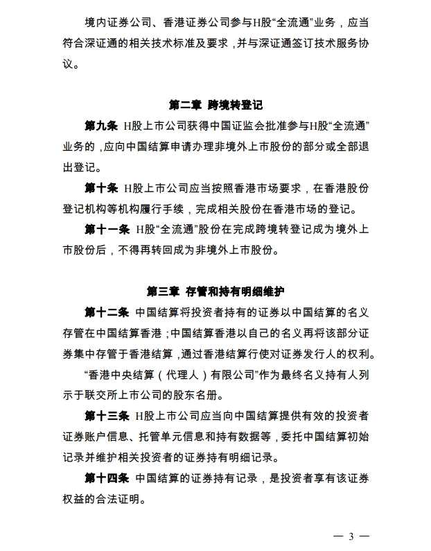 全流通,H股,實施細則,中國證券登記結(jié)算有限責任公司