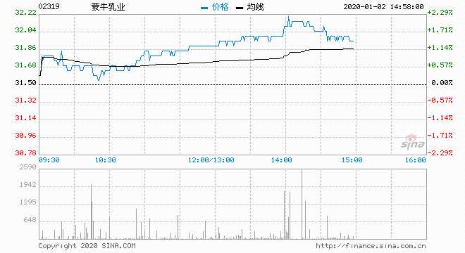 蒙牛乳業(yè)(02319)現(xiàn)價(jià)升1.9%,報(bào)32.1元;成交約250萬股,涉資7944萬元。