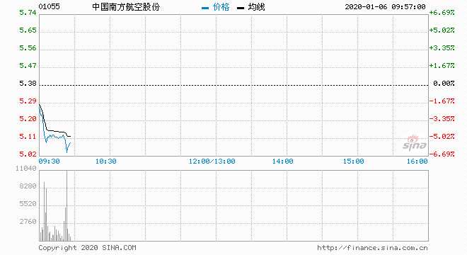 1月6日消息,國際油價持續(xù)上升,航空股全線走低,中國南方航空大跌6%,中國國航跌4.69%,東方航空跌3.28%。稍早布油升破70美元/桶。