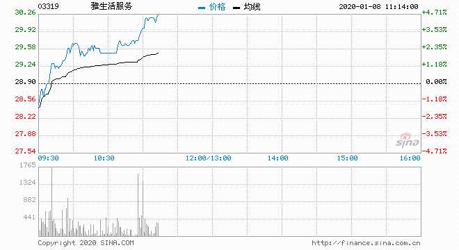 雅生活服務(wù)(03319)現(xiàn)價(jià)升2.94%,報(bào)29.75元兼創(chuàng)上市新高,盤中高見29.75元暫為全日最高位;成交約123萬(wàn)股,涉資3581萬(wàn)元,主動(dòng)買盤60%。