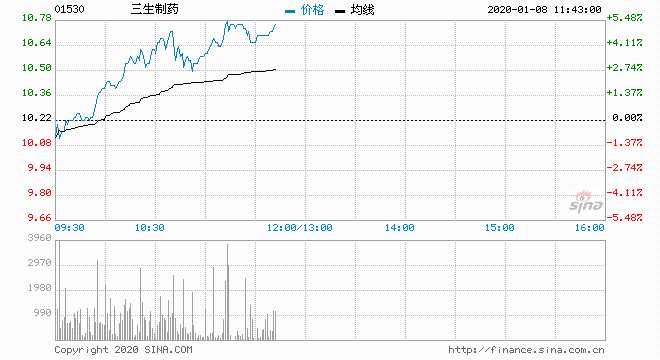 藥業(yè)股見反彈,三生制藥(01530)現(xiàn)價(jià)升4.11%,報(bào)10.64元,盤中高見10.74元,重上20天線(約10.344元),一度低見10.08元;成交約824萬股,涉資8609萬元。