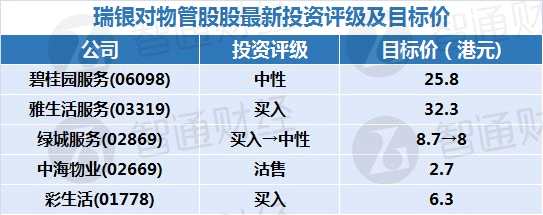 二、瑞銀對(duì)物管股股最新投資評(píng)級(jí)及目標(biāo)價(jià)