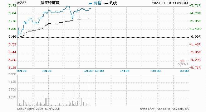 福萊特(601865,股吧)玻璃(06865)H股現(xiàn)價(jià)升3.75%,報(bào)5.81元,盤中高見5.93元,創(chuàng)上市高位;成交約379萬股,涉資2189萬元。