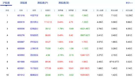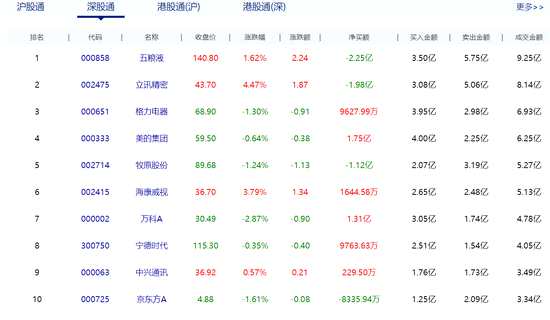 北向資金凈流入10.44億元 五糧液凈賣出額居首