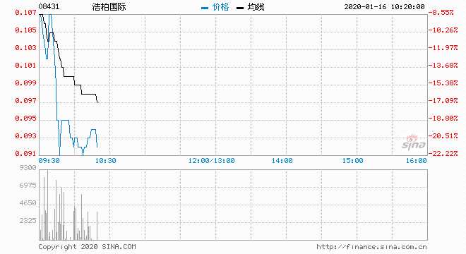 浩柏(08431)跌20.51%,報0.093元,最低價為0.09元,創(chuàng)1個月新低,最高價為0.11元,主動賣盤80%;成交581萬股,涉資59.3萬元.以現(xiàn)價計,該股暫連跌3日。