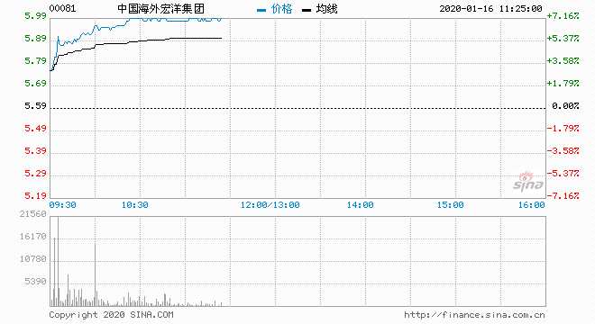 中海外宏洋(00081) 5.99元 升7.16%