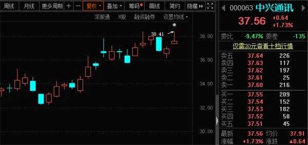 截至上午收盤(pán),中興通訊A、H股均收紅,A股報(bào)收37.56元/股,上漲1.73%。