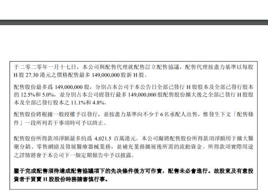 國(guó)藥控股擬折讓7.5%配售最多1.49億股H股 籌資40.1億