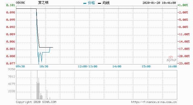 賞之味(08096)跌20%,報0.08元,最低價為0.08元,創(chuàng)上市新低,最高價為0.098元,主動賣盤100%;成交198萬股,涉資17.69萬元。