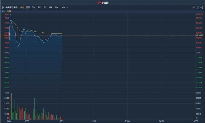 獲悉,中國(guó)醫(yī)療集團(tuán)(08225)昨日大漲280%,盤(pán)中臨時(shí)停牌。公司于盤(pán)后發(fā)布公告,確認(rèn)并不知悉導(dǎo)致價(jià)格或成交量變動(dòng)的任何原因。該股今日復(fù)盤(pán),盤(pán)中一度漲超100%,截至發(fā)稿,漲48.84%,報(bào)0.64港元,成交額1.06億港元。