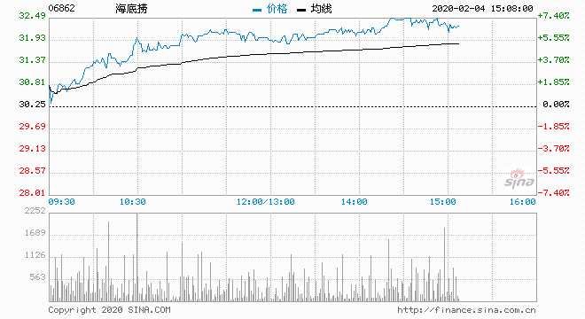 海底撈 (06862) 32.50元 升7.44%