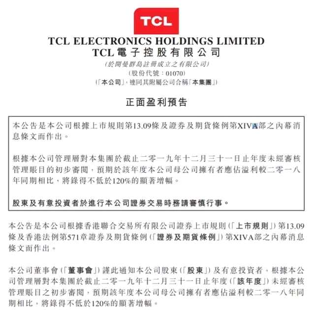 發(fā)布正面盈利預(yù)告,TCL電子能否一直保持迅猛增勢?