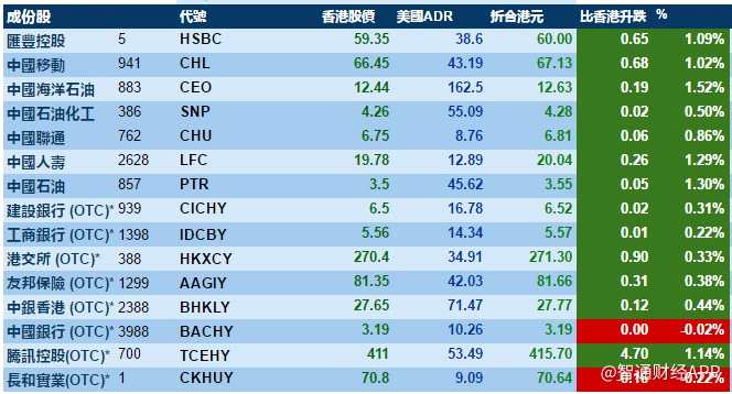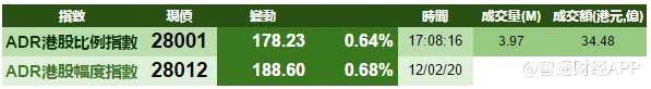 美股三大指數(shù)齊創(chuàng)新高,刺激港股ADR指數(shù)全日做好,按比例計算,收報28001點,升178點或0.64%。