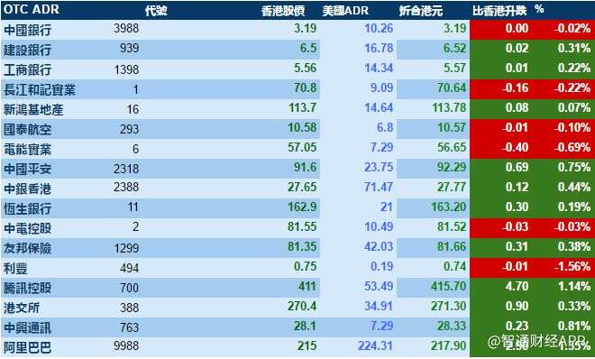 2月13日智通ADR統(tǒng)計