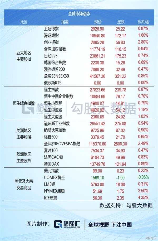 【A股】 昨日兩市主要指數(shù)收漲,滬指8連陽收漲0.87%,報2926.9點;深成指漲1.6%,報10940.8點;創(chuàng)業(yè)板大漲2.8%,報2085.28點。兩市成交額7800逾億,3150股上漲,124股漲停;北上資金臨近收盤加速流入至逾40億。盤面上,題材概念活躍,國產(chǎn)軟件概念股全線上漲,浪潮信息、用友網(wǎng)絡(luò)等多股漲停;種業(yè)概念股集體上漲,大北農(nóng)漲停;云計算概念股大漲,三五互聯(lián)、【南興股份(002757)、股吧】等十余股漲停;操作系統(tǒng)、稀缺資源、光伏太陽能、衛(wèi)星導航等概念表現(xiàn)強勢。