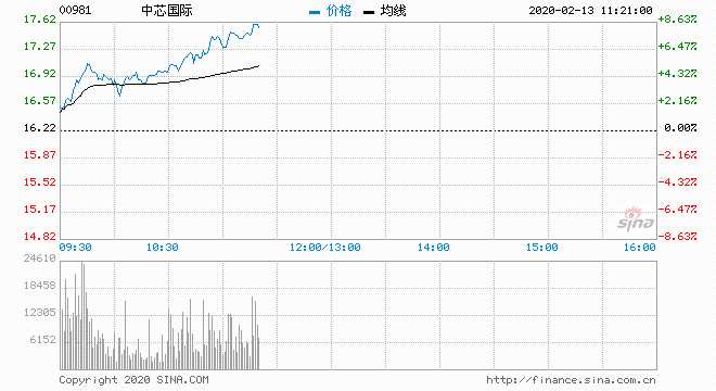 中芯國(guó)際 ?。?0981) 16.96元 升4.56%