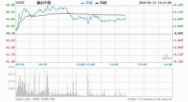 融創(chuàng)中國 (01918) 43.95元 升1.97%
