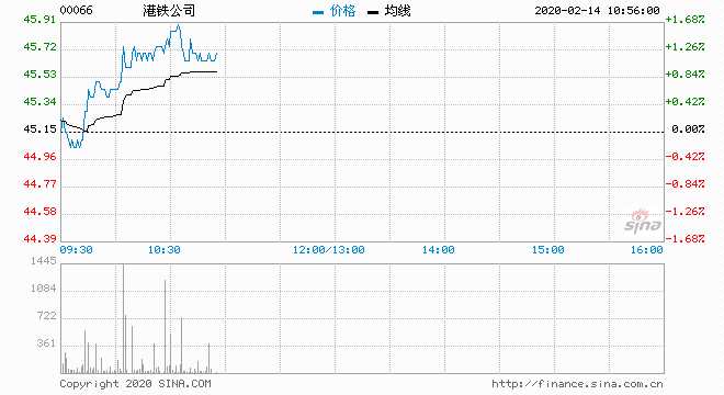 港鐵公司(00066) 45.70元 升1.22%