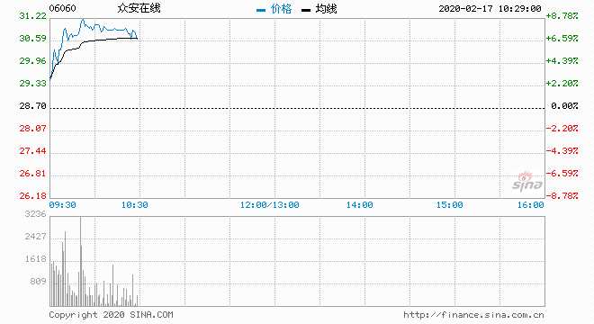 眾安在線(06060) 30.60元 升6.62%