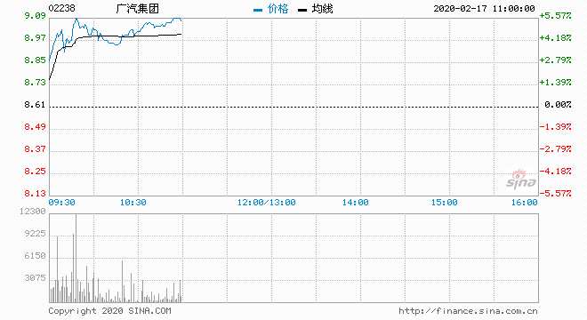 廣汽集團?。?2238) 9.03元 升4.88%