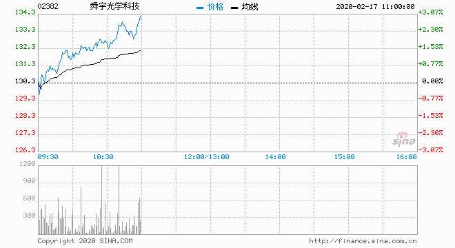 舜宇光學(xué)?。?2382) 132.80元 升1.92%