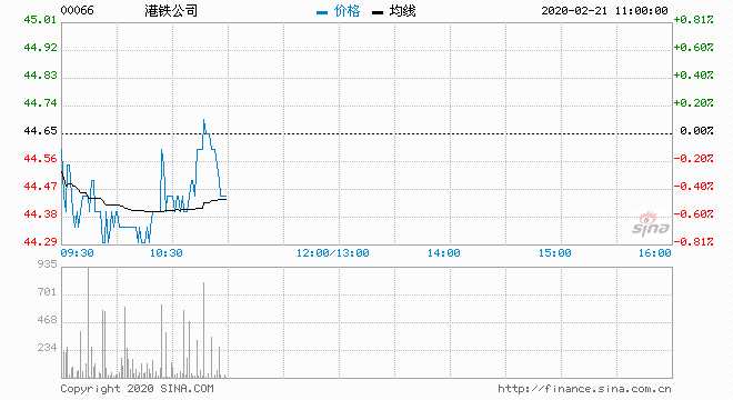 港鐵公司 ?。?0066) 44.35元 跌0.67%