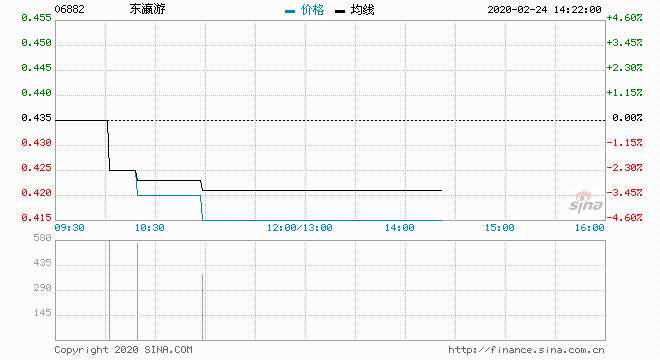 東瀛游現(xiàn)價下跌3.45%,報0.42元;成交約15萬股,涉資6萬元,盤中低見0.415元。