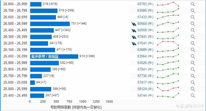 截至2月25日,恒指最新的牛熊街貨比例58:42。瑞信恒指牛熊證街貨分布圖中的數(shù)據(jù)顯示,熊證街貨重貨區(qū)在27700-27799區(qū)間,該區(qū)間最新熊證數(shù)量為1320張,較上一交易日增加269張,最多新增也在此區(qū)間。牛證街貨重貨區(qū)在26000-26099區(qū)間,該區(qū)間最新牛證數(shù)量為910張,較上一交易日增加396張,最多新增也在此區(qū)間。