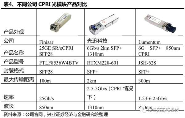 前傳光模塊需求占比最大,25G產品市場空間較大。從連接數(shù)量上看,前傳光模塊數(shù)量最大,在5G承載網(wǎng)絡中需求最高,同時由于應用場景通常為室外,需要工業(yè)級的光模塊,速率為25Gb/s,同時正常工作溫度范圍要求較大,為-40度至+85度。采用的激光器/探測器組合方案取決于傳輸距離,對于較短傳輸距離(100m/300m,往往用在DU與AAU距離較近的情況)可以采用多模光纖,波長為850nm,采用激光器/探測器類型為VCSEL/PIN組合,而對于中長距離傳輸(10km/20km,DU與AAU距離較遠)采用單模光纖,波長為1310nm/1550nm,采用激光器/探測器類型多為DFB/PIN或EML/PIN組合。因此,這幾種類型的光模塊在5G規(guī)模建設時期有望大批量出貨,市場空間較大。