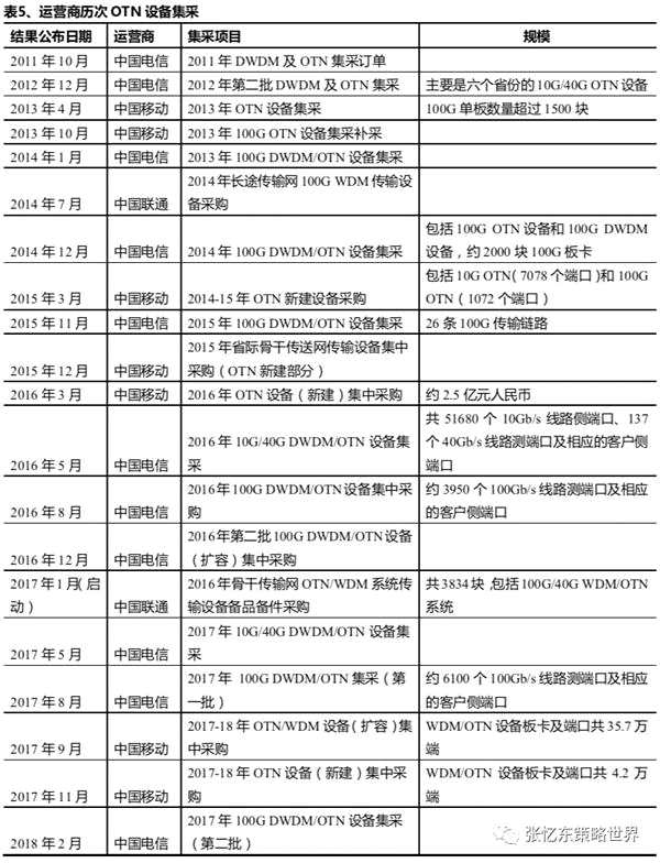 骨干網(wǎng)主要采用支持高速大容量長距傳輸?shù)腛TN技術,采用光模塊多為WDM/DWDM光模塊(即彩光模塊),速率多為100G,但總體數(shù)量較少。OTN(光傳送網(wǎng))技術實際上是基于WDM(波分復用)的全光網(wǎng)絡,將傳送網(wǎng)推進到了真正的多波長光網(wǎng)絡階段。OTN可以提供巨大的傳送容量、完全透明的端到端波長/子波長連接,以及電信級的保護,并加強子波長匯聚、疏導能力。OTN配置、復用以及交叉的顆粒明顯大于前代網(wǎng)絡技術,從而大大提升了高帶寬數(shù)據(jù)業(yè)務的傳送效率和適配能力。此外,OTN可以最大限度利用現(xiàn)有設備資源,并可以提供跟靈活的基于電層和光層的業(yè)務保護功能。
