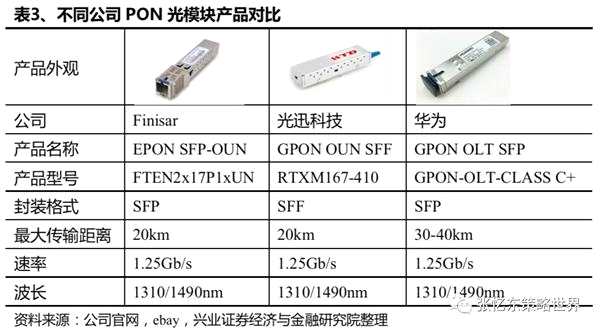 OLT和ONU一臺設備消耗上百個光模塊,速率較低一般為1.5Gb/s。由于網(wǎng)絡的特點,PON光模塊往往為一對多的模式,模塊不成對使用。以華為OLT平臺MA5800-X17為例,共有17個業(yè)務槽板,每個業(yè)務槽板支持16個PON端口,則單臺設備共支持272個PON端口。由于PON一般應用于小區(qū)域內,傳輸距離較短,一般為20km以內,傳輸速率較低一般為1.5Gb/s,此外,上行波長為1310nm,下行波長為1490nm。目前運營商主要采用傳輸協(xié)議為EPON和GPON,其封裝形式包括SFF,SFP/SFP+。