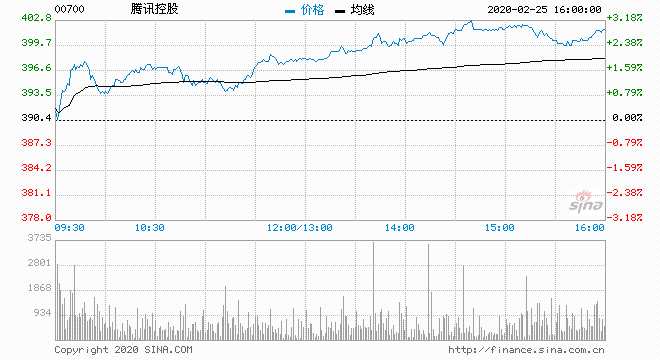 騰訊升破400元領(lǐng)漲藍(lán)籌 騰訊云音視頻流量井噴增長(zhǎng)