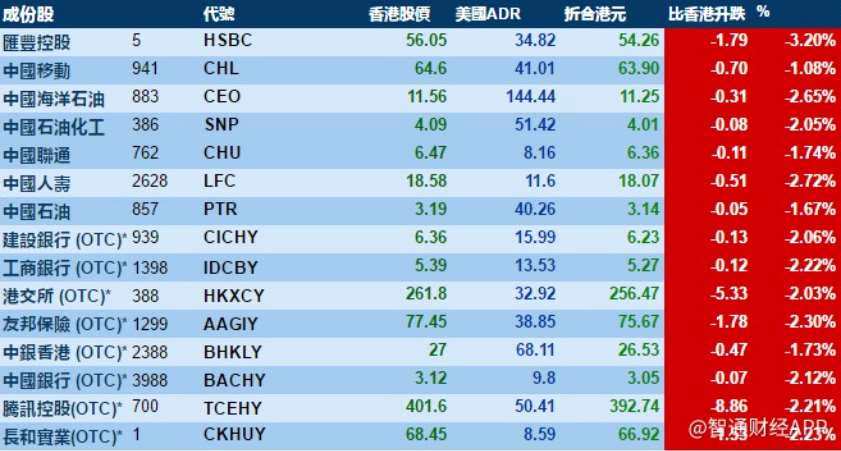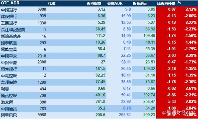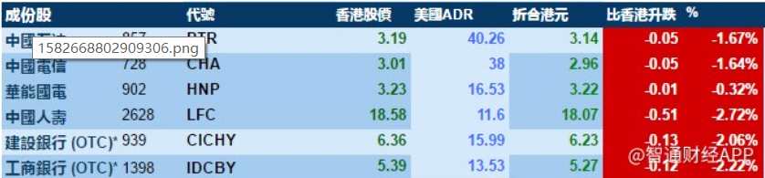 2月26日智通ADR統(tǒng)計(jì)