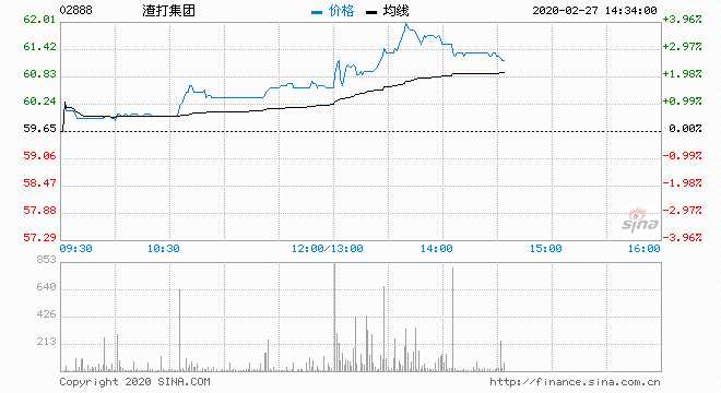 渣打集團(02888) 61.00元 升2.26%