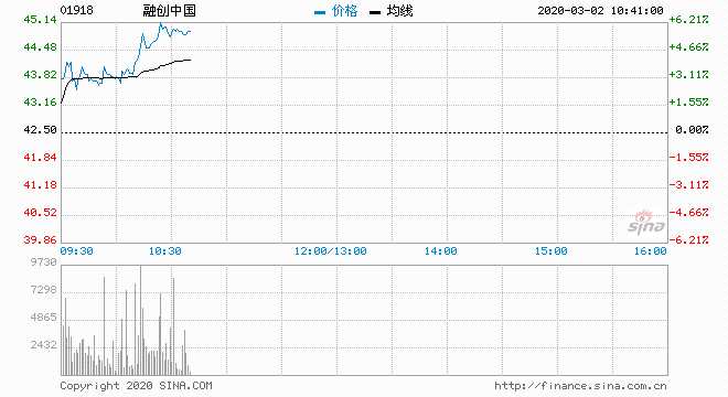 融創(chuàng)中國(01918) 44.00元 升3.53%