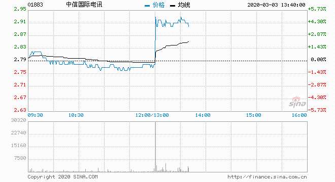 中信國(guó)際電訊(01883) 2.92元 升4.66%