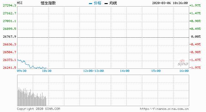 3月6日消息,港股恒指跌幅擴大至1.92%,國企指數(shù)、紅籌指數(shù)跌幅均擴大至2%,藍籌股近全線下跌。