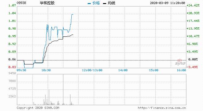 華和控股(09938)升16.28%,報1元,最高價為1元,創(chuàng)上市新高,最低價為0.83元,主動買盤84%;成交98萬股,涉資89.36萬元.以現(xiàn)價計,該股暫連升2日。