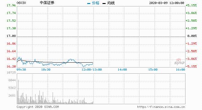 中信證券跌近5% 滬綜指半日下跌2.4%