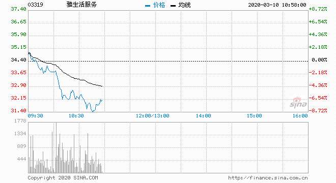 雅生活服務(wù) (03319) 32.15元 跌6.54%