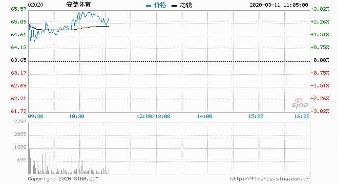 安踏體育(02020)現(xiàn)價升2.12%,報65元,破十天線(64.62元);成交約219萬股,涉資1.42億元。